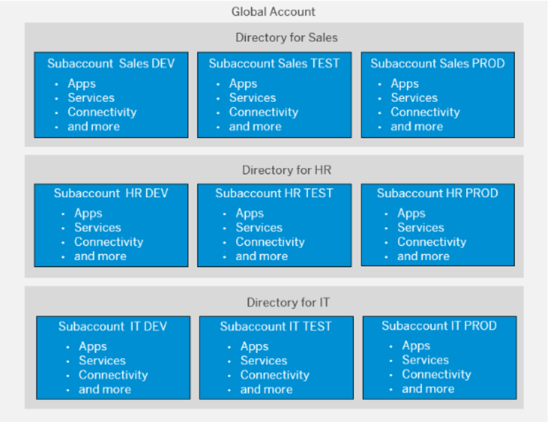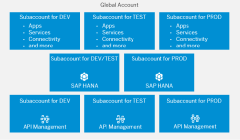 - Un compte global peut contenir un ou plusieurs subaccounts dans lesquels on déploie des applications, utiliser des services et gérer les suscriptions.